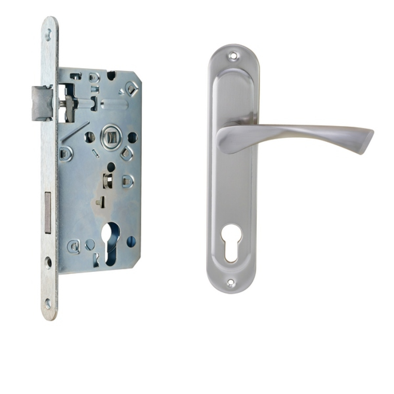 Замок врезной 7504 с ручкой без цилиндра 72ZC SN алюминий (AL)+ЦАМ Arni